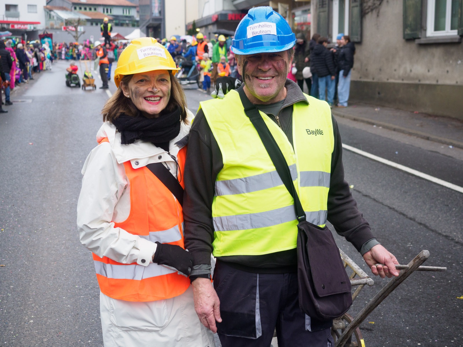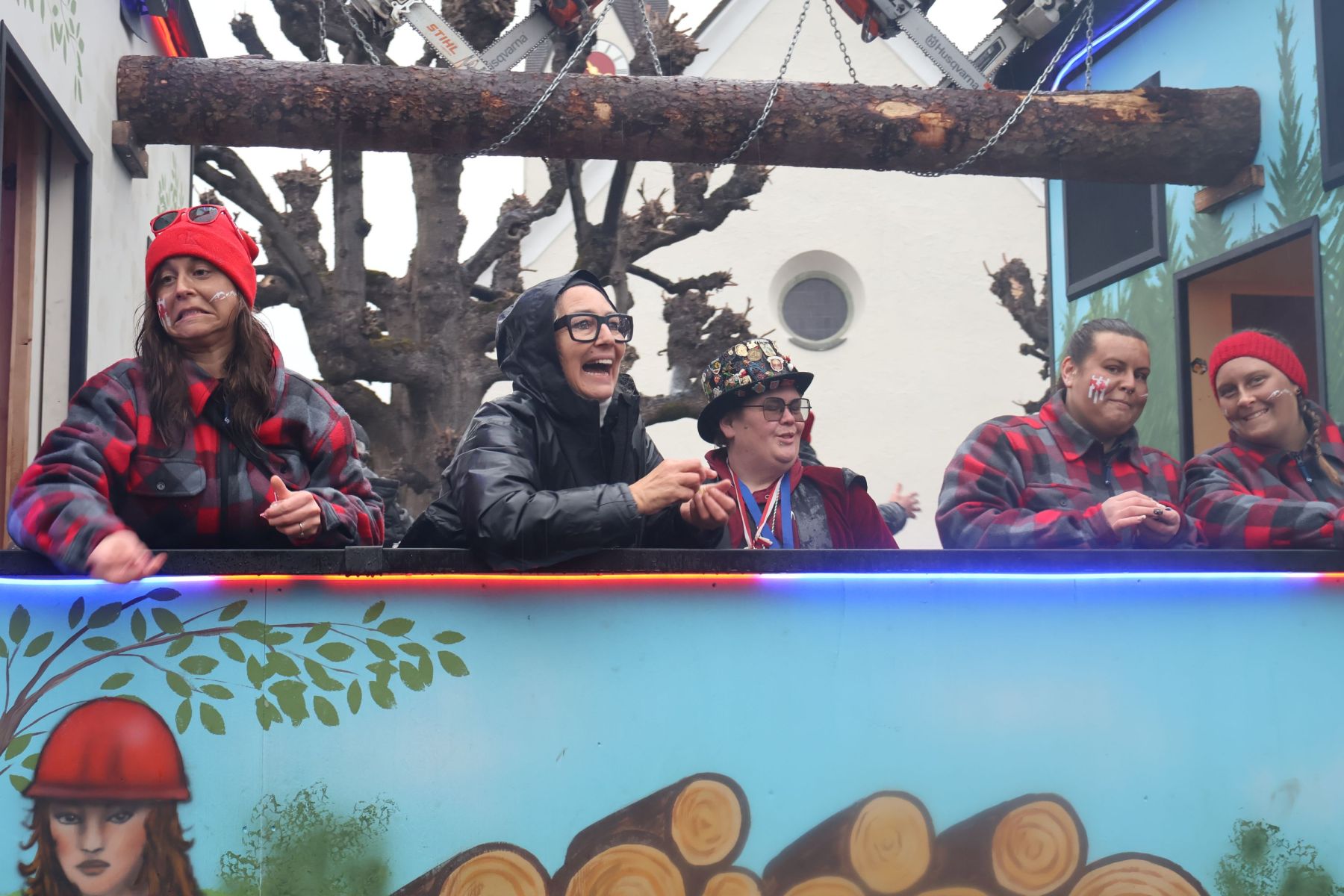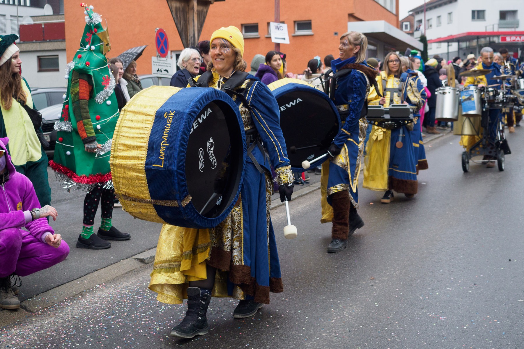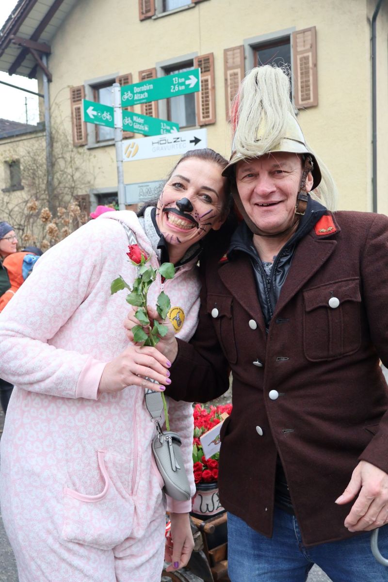 Angeführt wurde der Umzug von der Freiwilligen Feuerwehr Götzis mit Kommandant Rainer Büsel und seinem Vorgänger Eugen Böckle. Ihr Bollerwagen war nicht nur mit Löschutensilien, sondern auch mit Rosen bestückt, die an das Publikum verteilt wurden. Es folgten die Mitglieder der Götzner Fasnat, angeführt vom neuen Tuk-Tuk. Mit dabei waren auch Vizebürgermeister Christoph Längle sowie die Bürgermeister der Kummenbergregion – Gerhard Hölzl, Daniel Schuster und Markus Giesinger – ebenso wie Altbürgermeister Werner Huber. Für musikalische Stimmung sorgten die Bürgermusik Götzis und die Lumpamusik Götzis.