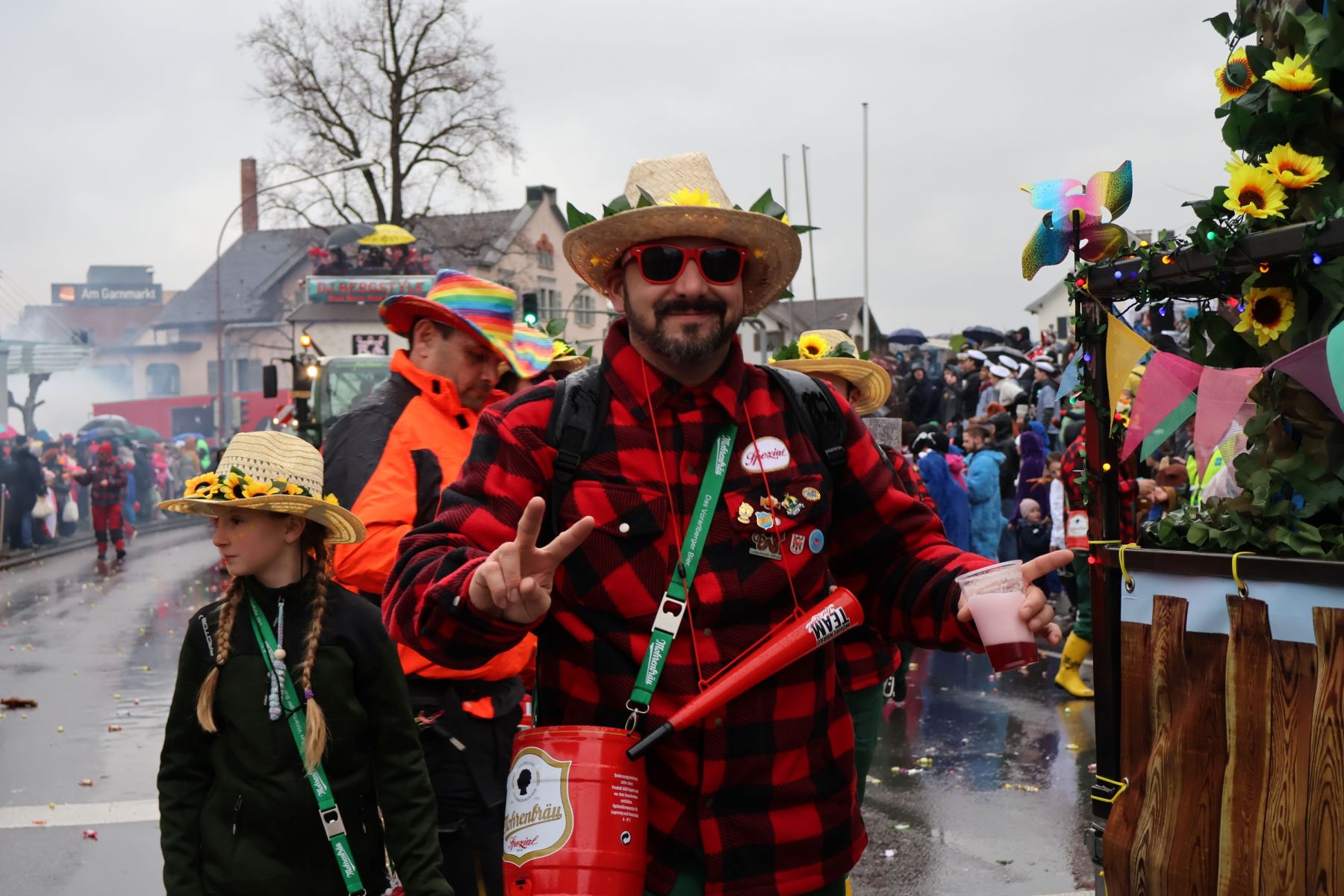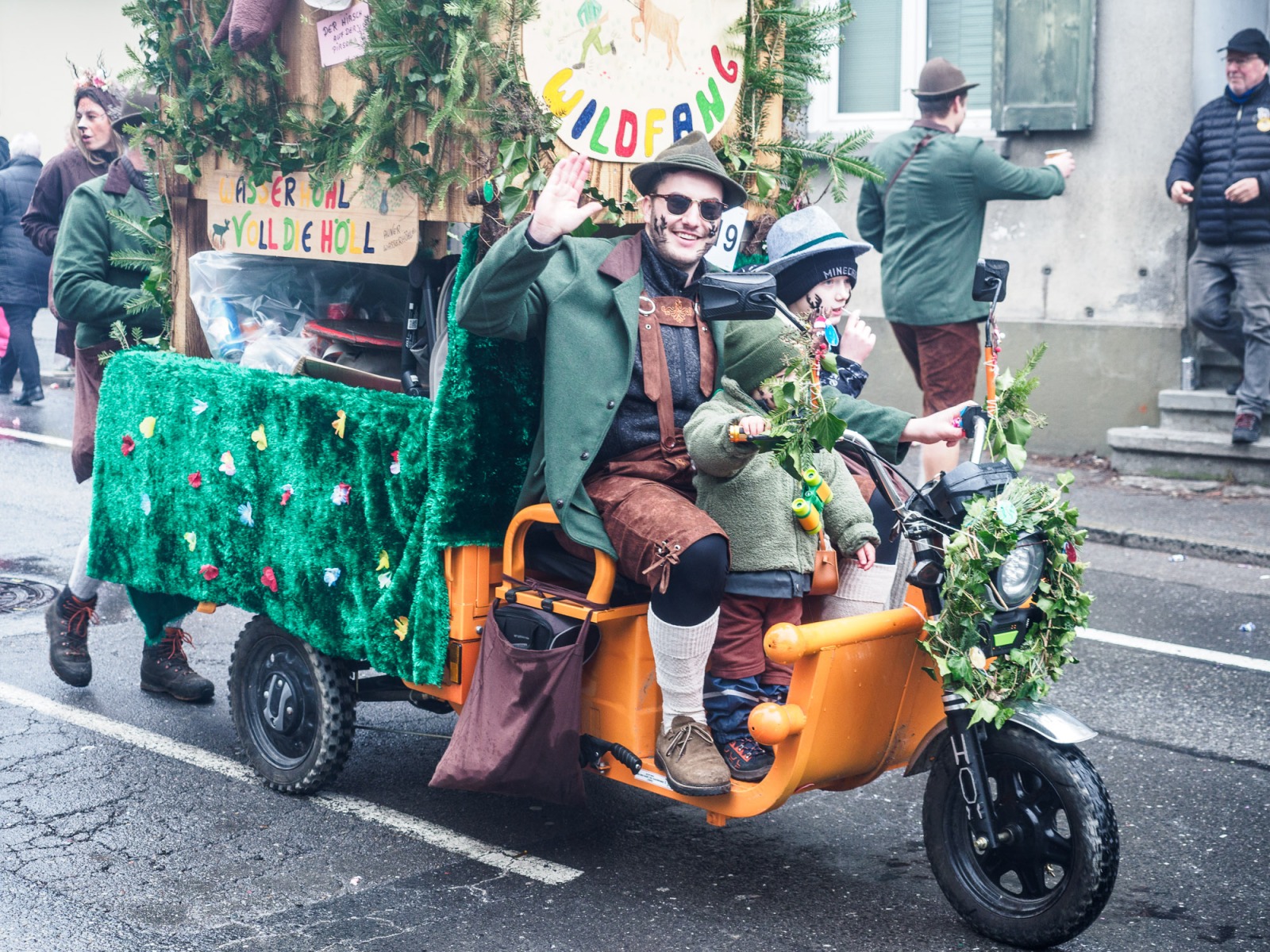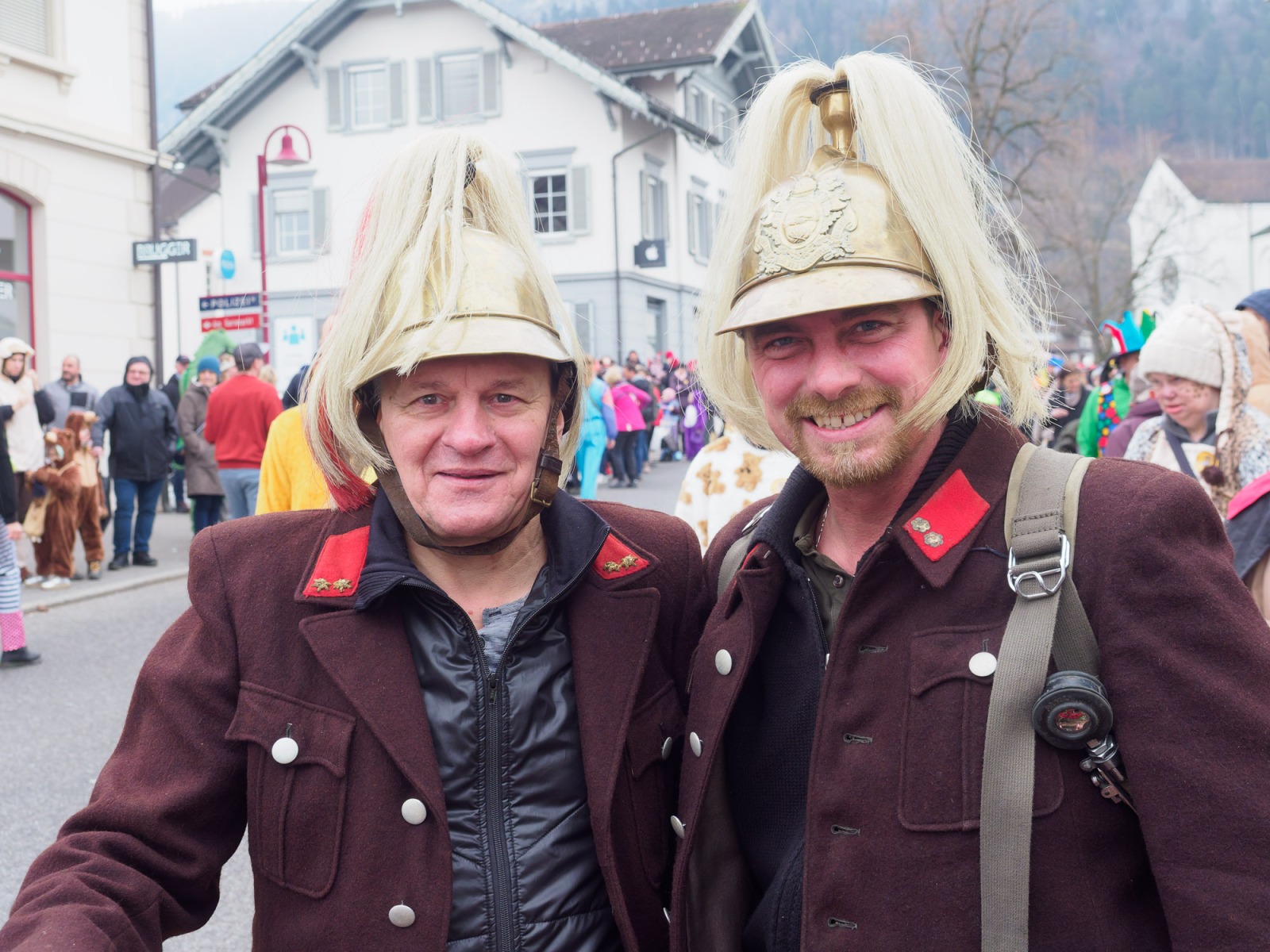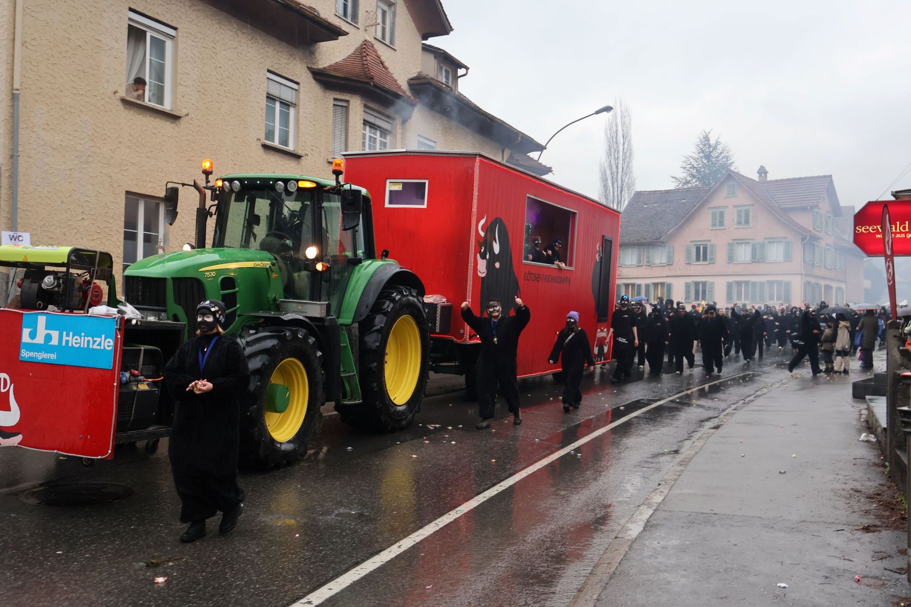 Angeführt wurde der Umzug von der Freiwilligen Feuerwehr Götzis mit Kommandant Rainer Büsel und seinem Vorgänger Eugen Böckle. Ihr Bollerwagen war nicht nur mit Löschutensilien, sondern auch mit Rosen bestückt, die an das Publikum verteilt wurden. Es folgten die Mitglieder der Götzner Fasnat, angeführt vom neuen Tuk-Tuk. Mit dabei waren auch Vizebürgermeister Christoph Längle sowie die Bürgermeister der Kummenbergregion – Gerhard Hölzl, Daniel Schuster und Markus Giesinger – ebenso wie Altbürgermeister Werner Huber. Für musikalische Stimmung sorgten die Bürgermusik Götzis und die Lumpamusik Götzis.