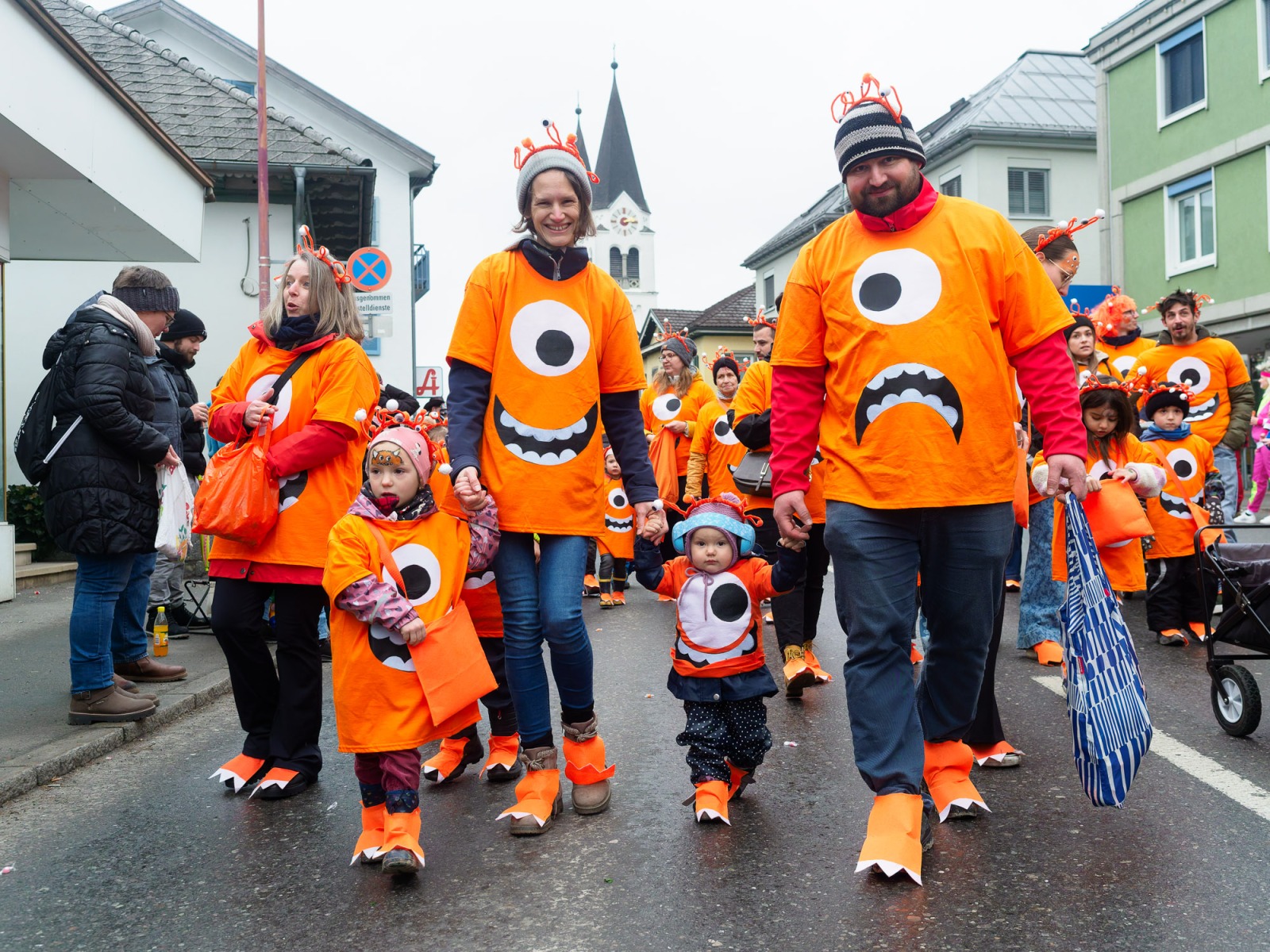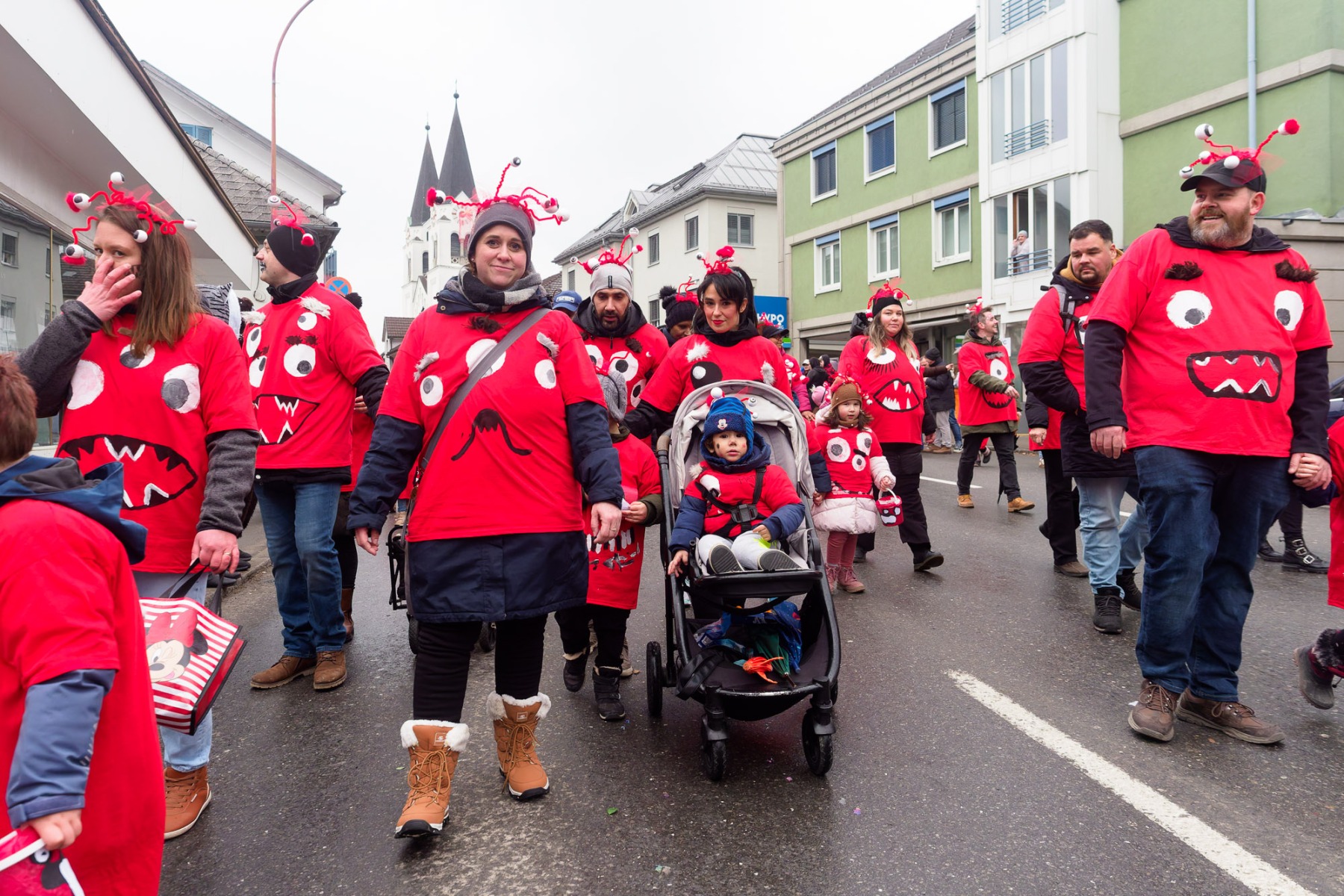 Rund 60 Gruppen aus der Kummenbergregion sowie aus vielen Gemeinden und Städten in Vorarlberg und Liechtenstein nahmen teil. Mehr als 1.300 Kinder, Musik- und Fußgruppen und fantasievoll gestaltete Faschingswagen zogen vom Gemeindeamt über die Hauptstraße, die Dr.-Alfons-Heinzle-Straße und die Ringstraße bis zum Ziel bei der Kulturbühne AMBACH.